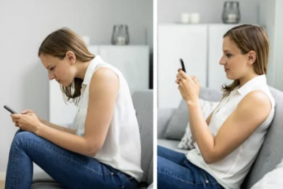 最大の要因は前かがみ・うつむき姿勢の反復です。スマホやPC操作では背中が丸まり、顔が前に突き出され、頚椎は常に牽引される方向へ。短期的な出来事ではなく、日々の癖の積み重ねで徐々に進行します。